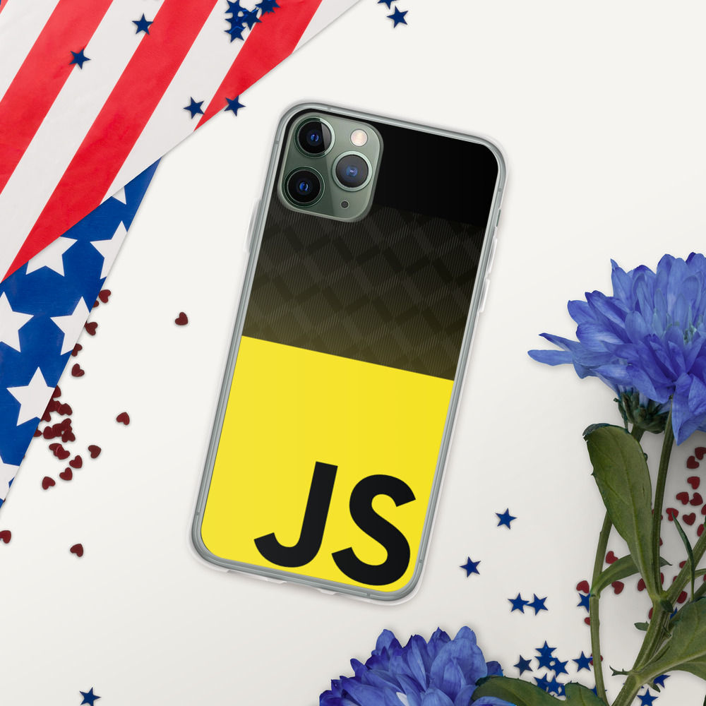 This sleek Nerdy JavaScript iPhone Case protects your phone from scratches, dust, oil, and dirt. It has a solid back and flexible sides that make it easy to take on and off, with precisely aligned port openings.