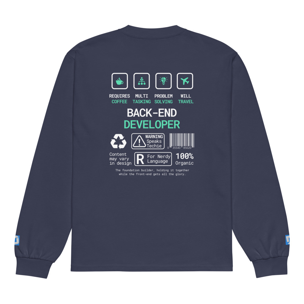 Freshen up your wardrobe with this modern, premium Are Ya Coding Backend Dev Long Sleeve shirt. Its heavyweight fabric and relaxed fit ensure its not just any sweatshirt but your go-to for every occasion. Wrap yourself in the comfort of 100% carded cotton and make your everyday style look effortless.
